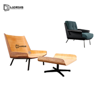 Silla de sofá individual de lujo ligera con pedal, tablero de flexión de madera contrachapada, tablero de flexión de silla de ocio de sala de estar